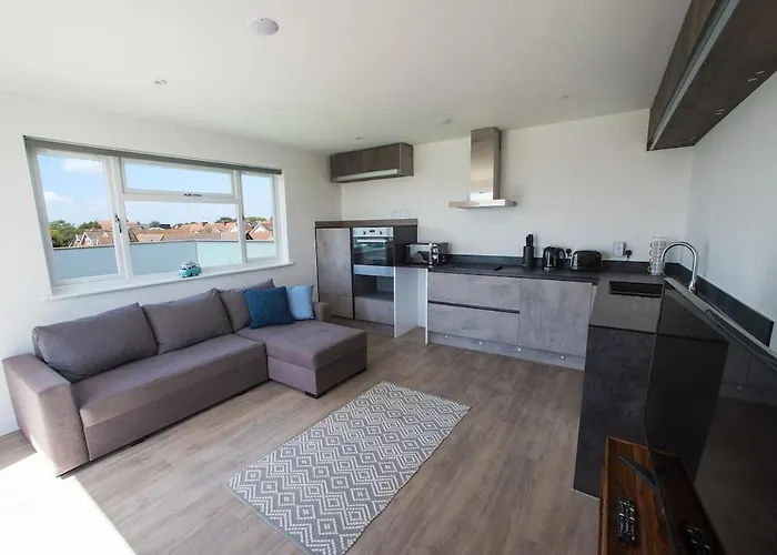 El encantador Apartamento Surfside Penthouse es un oasis de confort que se encuentra a tan solo 2 km del vibrante centro de Bournemouth. Este exclusivo apartamento se sitúa a 10 km de las impresionantes playas de Bournemouth, lo que lo convierte en un refugio ideal para los amantes del mar y la diversión. La ubicación del apartamento te permite disfrutar de la vibrante vida de Bournemouth, con sus numerosas tiendas y opciones de entretenimiento. El transporte público cercano facilita el acceso a todos los rincones de la costa, permitiéndote explorar cada rincón encantador sin complicaciones.